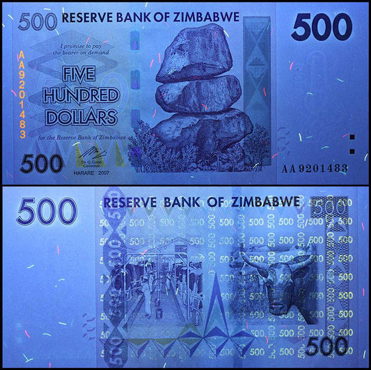 コンディション:非常に良い【極美品】ジンバブエ 500ドル(3次紙幣)