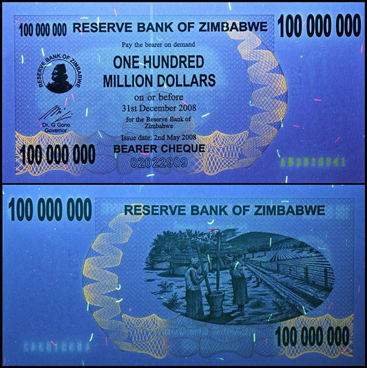 コンディション:未使用【未使用】ジンバブエ 100,000,000ドル (2次紙幣)