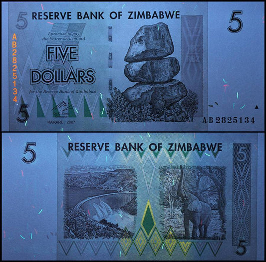 コンディション:未使用【未使用】ジンバブエ 5ドル(3次紙幣)
