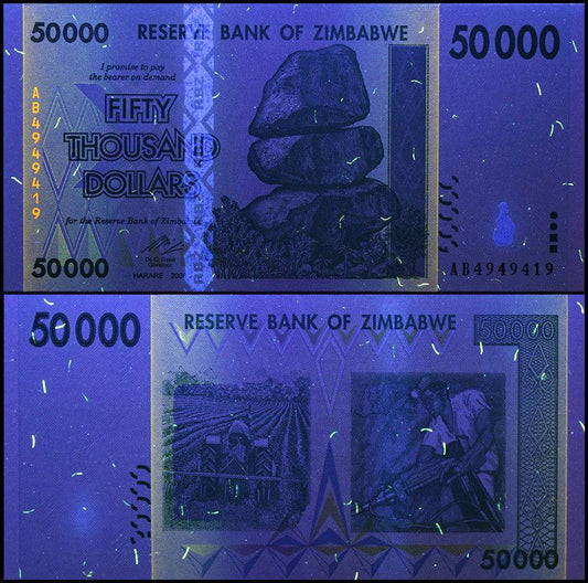 コンディション:良い【美品】【ジンバブエ】50,000ドル(3次紙幣)