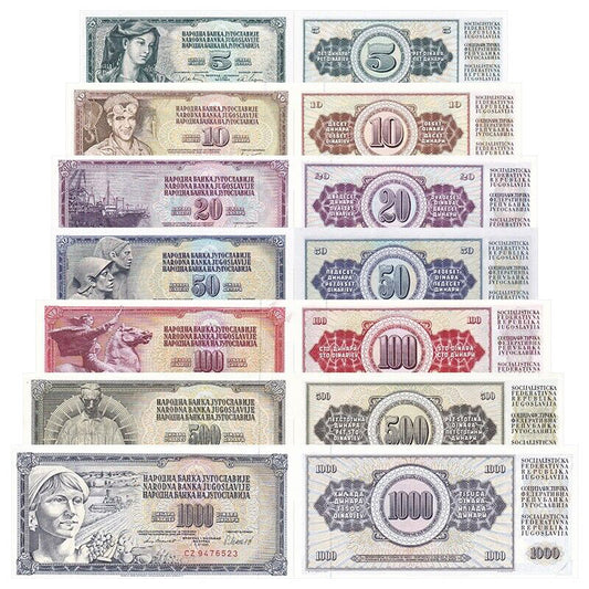 コンディション:未使用ユーゴスラビア 7枚 セット (5〜1000 ディナール)